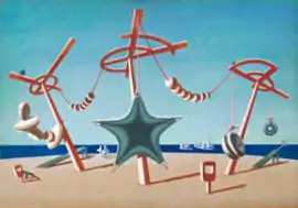 The Beached Margin is a 1937 painting by the English painter Edward Wadsworth. It depicts a beach still life where three poles in the sand are decorated with semi-abstract objects and geometrical shapes.