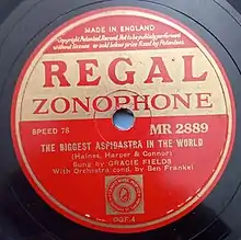 - Decca matrix DLA 2456. The biggest aspidistra in the world / Gracie Fields, Discography of American Historical Recordings. Retrieved 15 January 2021