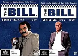 The sixth series of The Bill, a British television drama, consisted of 104 episodes, broadcast between 2 January – 27 December 1990. The series was first released on DVD as part of the Collection 5 and Collection 6 DVD boxsets in Australia, made available on 9 April – 8 October 2008, respectively. The series was later reissued as two-half series boxsets in Australia, released on 7 March 2012. The above artwork is taken from the most recent Australian release. It features images of DC Tosh Lines and DI Frank Burnside. The original Collection box-sets contained sole images of PC Reg Hollis and DS Ted Roach. In the UK, the first nine episodes were released on DVD under the title Volume 7, on 2 September 2013.