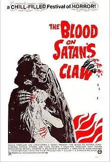 The Blood on Satan's Claw[lower-alpha 1] is a 1971 British supernatural horror film directed by Piers Haggard and starring Patrick Wymark, Linda Hayden, and Barry Andrews. Set in early 18th-century England, it follows the residents of a rural village whose youth fall under the influence of a demonic presence after a local farmer unearths a mysterious deformed skull buried in a field.