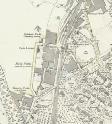 The boy knows that on the approach to Kirkcaldy railway station they will "sune be comin’ to Beveridge Park": a large Victorian park opened in 1892, which was bequeathed to the people of Kirkcaldy by the industrialist and Provost Michael Beveridge (1836-1890).[74][75] Beveridge was a linen manufacturer and founder of the linoleum company Barry, Ostlere and Shepherd, the "second largest floorcovering manufacturer in Scotland"[76] after the Michael Nairn and Co linoleum company.