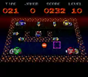 A time limit is in effect; running out of time means losing a life.[2] Players can only control the direction in which a Brainy will walk; taking care not to bump into another Brainy or an obstacle.[2] There are four difficulty levels and the object is to return the Mexican jumping beans safely home. Items can be picked up; they may be beneficial or detrimental to the Brainy depending on certain factors.[2] Arrows can also force a Brainy to change directions; rendering him helpless for a while and possibly messing up a carefully solved puzzle.[2]