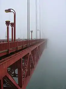 The Bridge is a 2006 British-American documentary film by Eric Steel spanning one year of filming at the Golden Gate Bridge which crosses the Golden Gate entrance to San Francisco Bay, connecting the city of San Francisco, California to the Marin Headlands of Marin County, in 2004. The film shows a number of suicides, and features interviews with family and friends of some of the identified people who had thrown themselves from the bridge that year and one person who had jumped previously and survived.[4]