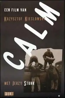 The Calm (Polish: Spokój) is a film by Polish director Krzysztof Kieślowski made in 1976 but not exhibited until broadcast on Polish television in 1980.[1] It starred Jerzy Stuhr, Izabella Olszewska, and Jerzy Trela.[2] Based on a story by Lech Borski and a screenplay by Kieślowski and Jerzy Stuhr, the film is about a young man who leaves prison after a three-year sentence seeking to start a new life. His dreams of a better life are broken, however, when he is forced into a conflict between a corrupt construction company boss and his fellow workers who go on strike. The Calm was filmed on location in Kraków[3] and completed in 1976, but was banned by the state because of its subject matter—strikes were illegal in Poland during that time.[4][Note 1] The film was finally shown on Polish television for the first time on 19 September 1980. In 1981, The Calm received the Polish Film Festival Special Jury Prize.[6]