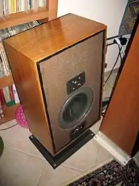 This product was important because it was the first loudspeaker system which, due to its particular crossover,[2] showed a flat impedance curve (except for the resonance peak) with a consequent easier work for the amplifier and linear frequency response.