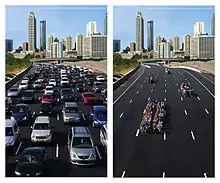 The challenge derives from the fact that an individual commuter in metro Atlanta is capable of eliminating a full ton of atmospheric pollutants simply by using an alternative commuting method once per week. The average round-trip commute distance in Atlanta is 40 miles.[9] It is estimated that one pound of atmospheric pollution is emitted per mile driven in a conventional vehicle.[10][11] By eliminating one commute per week, or roughly 52 commutes per year, the average Atlantan would keep 2,080 lbs., or slightly over one ton, of pollution out of the air.