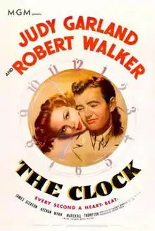 The Clock (UK title Under the Clock) is a 1945 American romantic drama film starring Judy Garland and Robert Walker and directed by Garland's future husband, Vincente Minnelli. This was Garland's first dramatic role, as well as her first starring vehicle in which she did not sing.