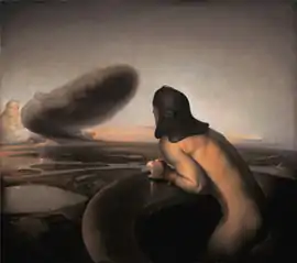 The Cloud (Norwegian: Skyen) is a 1985 oil painting by the Norwegian artist Odd Nerdrum. It depicts a nude man in a leather helmet, looking out over a landscape with a compact dark cloud in the sky.