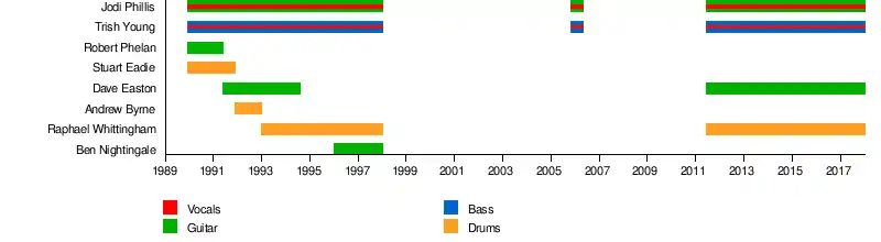 - Jodi Phillis – guitar, vocals (1989–1997, 2005–2006,[lower-alpha 1] 2011–present)
