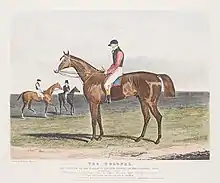 The Colonel was a "compact"[1] chestnut horse with a broad white blaze standing 15.2 hands high. He was owned and bred by Edward Petre (1794–1848), a free-spending sportsman and gambler,[2] who was a younger son of Robert Petre, 9th Baron Petre. The Colonel was sired by the Duke of Grafton's horse Whisker who won the 1815 Epsom Derby before becoming a successful breeding stallion.[3] His dam, an unnamed daughter of Delpini also produced My Lady, an influential broodmare whose modern descendants include Midway Lady and Eswarah.[4] Like the rest of Edward Petre's horses, The Colonel was trained by John Scott, who sent out the winners of 41 classics, from his Whitewall Stables at Malton in North Yorkshire. The colt was ridden in most of his early races by his trainer's younger brother Bill Scott.