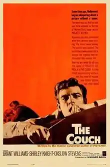 The Couch is a 1962 American psychological horror film directed by Owen Crump from a screenplay by Robert Bloch and a story by Blake Edwards and Owen Crump. The film stars Grant Williams, Shirley Knight, and Onslow Stevens.[1][2] The film was released by Warner Bros. on February 21, 1962.