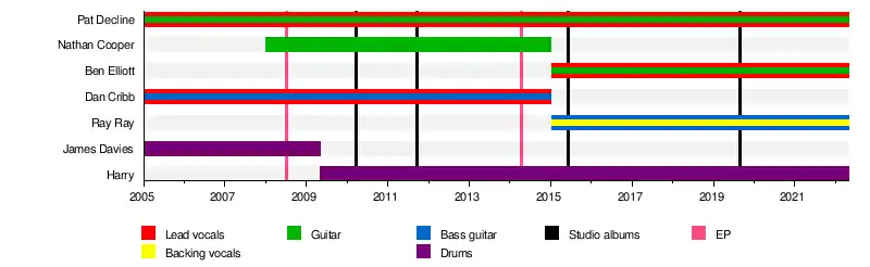 - Dan Cribb[19] – lead vocals, bass (2005–2015)