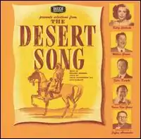 The Desert Song is an operetta with music by Sigmund Romberg and book and lyrics by Oscar Hammerstein II, Otto Harbach and Frank Mandel. It was inspired by the 1925 uprising of the Riffs, a group of Moroccan fighters, against French colonial rule.[1] It was also inspired by stories of Lawrence of Arabia aiding native guerrillas. Many tales romanticizing Arab North Africa were in vogue, including Beau Geste and The Son of the Sheik.[2]