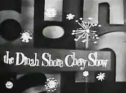 The Dinah Shore Chevy Show is an American variety series hosted by Dinah Shore, and broadcast on NBC from October 1956 to May 1963. The series was sponsored by the Chevrolet Motor Division of General Motors and its theme song, sung by Shore, was "See the U.S.A. in Your Chevrolet", which continued to be used in Chevrolet advertising for several more years after the cancellation of the show.