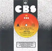 "The Dogs of War" is a song by Pink Floyd from their 1987 album, A Momentary Lapse of Reason.[1][2] It was released as a promotional single from the album. Live versions have an extended intro, an extended middle solo for the saxophone, a guitar and sax duel and a longer outro as compared to the album version. The track was a minor rock radio hit in the US and reached #16 on MTV's Video Countdown in May 1988.