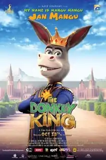 The Donkey King (Urdu: دا ڈونکی كِنگ) is a 2018 Pakistani computer animated comedy film, directed by Aziz Jindani. The film features the voices of Jan Rambo, Ismail Tara, Hina Dilpazeer, Ghulam Mohiuddin, and Jawed Sheikh. It was released in Pakistan on 13 October 2018 by Geo Films and Talisman Studios.[6] After its national success, it became the first Pakistani film to be dubbed into ten languages for multiple international theatrical releases, distributed worldwide by Annalisa Zanierato, for Pantera Film.[3]
