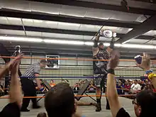 Starting in late 2013, Bully Ray and Devon have been something of a fixture within Tommy Dreamer's House of Hardcore promotion. On November 9, 2013, at HoH 3, Bully Ray attacked Dreamer and Terry Funk following the main event, claiming that Dreamer offended him by not inviting him to the show, before challenging Dreamer to a falls-count-anywhere street fight at the TNA One Night Only pay-per-view event Old School. Spike Dudley came out to make the save only to be beaten by Bully as well, whereas Devon appeared to confront Bully—only to turn around and aid him as the two hit Dreamer with a 3D, then fended off an attempted save by the Sandman.[71] Team 3D were also scheduled to officially team together against Dreamer and Abyss, then against Bad Influence (Christopher Daniels and Frankie Kazarian), on June 6 and 7, 2014 at House of Hardcore 4 and 5 respectively.[72][73] However, Bully Ray was pulled out of both events by TNA President Dixie Carter, turning the on-screen feud between Bully and Carter in TNA into a crossover storyline involving talent associated with both promotions.[74] On July 13, 2014, Team 3D defeated Kevin Steen and Jason Axe to win the 2CW Tag Team Championship.[75] On November 15, 2014, at HOH VII, Team 3D defeated NWA World Tag Team Champions Killer Elite Squad (Davey Boy Smith, Jr. and Lance Archer).[76]