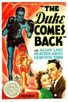 The Duke Comes Back is a 1937 American drama film directed by Irving Pichel and written by Adele Buffington and Edmond Seward. It is based on the 1933 novel The Duke Comes Back by Lucian Cary. The film stars Allan Lane, Heather Angel, Genevieve Tobin, Johnny Russell, Joseph Crehan and Frederick Burton. The film was released on November 29, 1937, by Republic Pictures.[1][2][3]