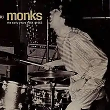 Guitarist Gary Burger said "It probably took us a year to get the sound right", as he recalled the Monks' demo sessions in September 1965.[4] Music critic Mark Deming described the tracks on The Early Years 1964-1965: "the almost psychotic zeal and ferocious energy that set the album's performances on edge aren't quite in evident; this music may stomp and clank, but it doesn't bite, and that's a big difference".[5] Another noticeable difference from the songs on Black Monk Time is the altered lyrics on some demos, which, in comparison, are less blunt than the album versions.[5] It also saw keyboardist Larry Clark open with a brief instrumental, reminiscent of a hymn, followed by an introduction by Burger; however, the practice was short-lived. The two tracks "Hushie Pushie" and "Space Age" are two tracks from the sessions which did not appear on Black Monk Time, but were featured in the Monks' concerts.[6]