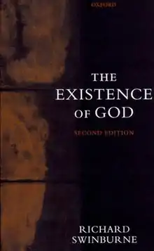 The Existence of God is a 1979 book by British philosopher of religion Richard Swinburne,[1] [2] claiming the existence of the Abrahamic God on rational grounds. The argument rests on an updated version of natural theology with biological evolution using scientific inference, mathematical probability theory, such as Bayes' theorem, and of inductive logic.[3] In 2004, a second edition was released under the same title.[4]