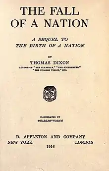 The Fall of a Nation, a Sequel to The Birth of a Nation, is an invasion literature novel by Thomas Dixon Jr. Dixon described it as "a burning theme, our need of preparation to defend ourselves in the world war."[1]: xxxi First published by D. Appleton & Company in 1916, Dixon directed a film version released the same year. The film is now considered lost.[2][3]