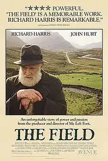 The Field is a 1990 Irish drama film written and directed by Jim Sheridan and starring Richard Harris, John Hurt, Sean Bean, Brenda Fricker and Tom Berenger. It was adapted from John B. Keane's 1965 play of the same name. The film is set in the early 1930s and was shot almost entirely in the Connemara village of Leenaun.