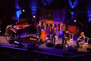 The Gloaming won the Meteor Choice Music Prize for 2014 Irish Album of the Year for their first album.[6] They won the 2015 BBC Radio 2 Folk Award for Best Traditional Track, for Samhradh Samhradh, which appeared on the first album.[7] In 2019 they were nominated for three RTÉ Radio 1 Folk Awards: Best Original Folk Track, Best Folk Group and Best Folk Album. Caoimhin Ó Raghallaigh was nominated for Best Folk Instrumentalist.[8] Iarla Ó Lionáird won the Best Folk Singer award.[9]