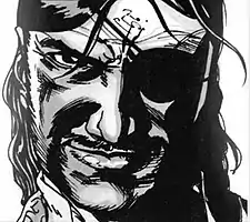 ![]() The Governor, as portrayed by David Morrissey in the television series (left) and in the comic book series (right) | |