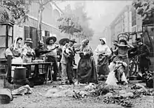 An impoverished father, with his young son and daughter, begs for food in a marketplace. When a merchant angrily turns them away, their plight attracts the attention of a woman of charity. Calling shame upon the unkind merchant, she buys the poor family some food, talks with the family, and adopts the two children. Marketplace workers, witnessing the scene, give the father work as a sign carrier.[2]