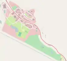 The facility known as the Hole is located on the Church of Scientology's Gold Base, built on the site of a resort called Gilman Hot Springs in the California town of San Jacinto. The base covers 520 acres (210 ha) bisected by a public highway, Gilman Springs Road, just off California State Route 79. It was secretly acquired by Scientology in 1978[4] under the alias of the "Scottish Highland Quietude Club".[5] Scientology established a secret base there which was staffed by members of the Sea Org, an inner core of Scientologists which is said to number some five to seven thousand people.[6] There are now two Sea Org bases in the compound: Gold, which houses the Church's in-house film studio Golden Era Productions, and Int, the Church's international headquarters, though in practice the whole site is usually called Gold Base.[5]