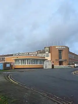 The Hoover Factory, situated in Pentrebach, Merthyr Tydfil, Wales, opened on 19 October 1948 in order to manufacture Hoover washing machines. The initial workforce consisted of only 350 people but throughout the years, the growth of the company saw this figure rise to 5,000 in the 1960s and 70s.[1]