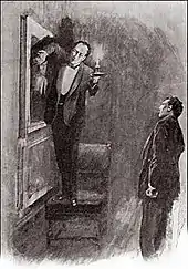 Distant howls and strange sightings trouble Watson during his long walks on the hills, and his mood gets no better even inside Baskerville Hall. Watson grows suspicious of the butler, Barrymore, who at night appears to be signaling from a window of the house with a candle to someone on the moor. Meanwhile, Sir Henry is drawn to Beryl, who seems to be afraid of her brother's opinion on the matter. To make the puzzle even more complex, there is Mortimer, who is all too eager to convince Sir Henry that the curse is real; Frankland, an old and grumpy neighbour who likes to pry with his telescope into other people's doings; his estranged daughter Laura, who had unclear ties to Sir Charles; and even a bearded man roaming free in the hills and apparently hiding on a tor where ancient tombs have been excavated by Mortimer for an unclear purpose.