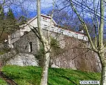 Much of the novel is an accurate account of the building of Cockade, the writer's own residence that he completed in 1939, a little way out of Eaux-Bonnes, south of Pau.[5] It was a substantial six-bedroom property, called Cockade because of the way in which it projected from the hill as does a hackle from a hat.[6]