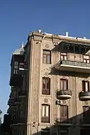 The Ramazanovs' house was built in 1895 by order of merchant Haji Mammadkarim Ramazanov. The building belonged to Haji Mammadkarim Ramazanov and his wife Umbulbanu. The four-storey building was built in a national-romantic style. Arches extending from the second floor to the last floor, as well as the language of the concha, referring to the stalactic system of the wooden balcony of the top floor, the domes and stone carvings give the building a special beauty. Elements of oriental architecture were used in the façades. On the first floor of the building, Haji Mammadkarim opened an electric theater called "Ermes". The second floor was leased to the famous businessman Rahim khan. On the third floor there were shops selling jewelry. The Ramazanov family lived on the fourth floor. "Mugham nights" were organized from time to time on the wooden balcony of the building. The patterned balcony was the resting place of the Ramazanovs. The patterns on this balcony have an interesting symbolic meaning. Thus, the leaf-shaped patterns on the balcony symbolize that Baku is a windy city.[1] The house where the Ramazanov family lived was divided into separate apartments during the Soviet era and distributed among the population[3]