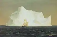The Icebergs is an 1861 oil painting by the American landscape artist Frederic Edwin Church. It was inspired by his 1859 voyage to the North Atlantic around Newfoundland and Labrador. Considered one of Church's "Great Pictures"—measuring 1.64 by 2.85 metres (5.4 by 9.4 feet)[1]—the painting depicts one or more icebergs in the afternoon light of the Arctic. It was first displayed in New York City in 1861, where visitors paid 25 cents' admittance to the one-painting show. Similar exhibitions in Boston and London followed. The unconventional landscape of ice, water, and sky generally drew praise, but the American Civil War, which began the same year, lessened critical and popular interest in New York City's cultural events.