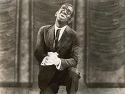 Jack Robin's use of blackface in his Broadway stage act—a common practice at the time, which is now widely condemned as racist[45]—is the primary focus of many Jazz Singer studies. Its crucial and unusual role is described by scholar Corin Willis: