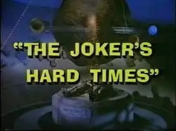 "The Joker's Hard Times" is the 72nd episode of the Batman television series in its second season. Part 2 of a three-part story, it first aired on ABC January 12, 1967 (a full year after the series' debut on The Alphabet Network) and repeated June 15, 1967. It guest-starred Cesar Romero as The Joker. Its ending cliffhanger was the first for the series that would not be resolved until the following week.
