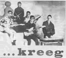 The Kreeg formed in Albuquerque, New Mexico, in 1966, out of another earlier band known first as the Goldenaires then the Prophets.[1][2][3] Their lineup consisted of Bob Sturtcman, who had previously played with another local band, the Goldenaires, on rhythm guitar and vocals, Hap Blackstock on bass and vocals, Larry Inks (lead guitar), and Russ Sturtcman on drums.[1] Hap Blackstock was eventually replaced by Ray Trujillo on bass.[1] When the Prophets decided to change their name, rhythm guitarist Bob Sturtcman came up with idea to call the band "the Blitzkrieg", but the group decided to shorten it, first to "the Krieg", then finally the Kreeg, mainly out concern for the numerous World War II veterans living in Albuquerque.[1][2][3] Going back to the Prophets, the band was heavily influenced by the Beatles, but eventually started listening to some of the harder, more blues-based British bands such as the Rolling Stones, Them, the Yardbirds, the Kinks, and the Animals, as well as American folk rock and garage-oriented bands such as the Beau Brummels and the Leaves.[1] The Kreeg developed a sound that combined blues and folk rock influences.[1]