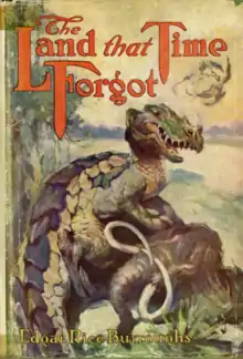 The Land That Time Forgot is a fantasy novel by American writer Edgar Rice Burroughs, the first of his Caspak trilogy. His working title for the story was "The Lost U-Boat." The sequence was first published in Blue Book Magazine as a three-part serial in the issues for August (vol. 27 #4),[1] October (vol. 27 #6),[2] and December (vol. 28 #2)[3] 1918. The complete trilogy was later combined for publication in book form under the title of the first part by A. C. McClurg in June 1924. Beginning with the Ace Books editions of the 1960s, the three segments have usually been issued as separate short novels.
