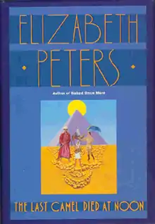 The Last Camel Died at Noon is the sixth in a series of historical mystery novels, written by Elizabeth Peters and featuring fictional sleuth and archaeologist Amelia Peabody. Although most of the Amelia Peabody series are fairly "hardboiled" historical detective stories, Last Camel is an exception and satirizes adventure novels in the tradition of Henry Rider Haggard. The title of this book is identical to the first sentence of the 1981 thriller The Key to Rebecca by Ken Follett.[1] The Last Camel Died at Noon most closely follows the tradition with plot elements like a lost and ancient civilization, a young English girl serving as its high priestess, an evil prince, a wronged noble prince who wants to free the slaves, kidnappings, escapes, mazes of tunnels (and palaces) hand-carved from cliffs.