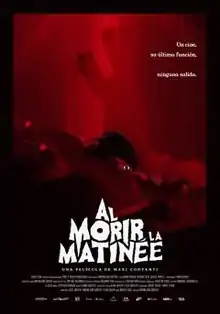 The Last Matinee (Spanish: Al morir la matinée) is a 2020 Spanish-language horror film also known as Red Screening directed by Maximiliano Contenti.[2] An international co-production of Uruguay and Argentina,[3] the film stars Luciana Grasso, Ricardo Islas, Julieta Spinelli, and Franco Durán. It premiered in Uruguay in September 2020.[4] Set in 1993 in Montevideo, an engineering student named Ana takes over the duties of her father, a projectionist at a declining movie theatre. Unbeknownst to her, the audience watching the film at the theatre is being murdered by a black-gloved killer.[3][4]
