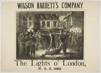 The Lights o' London is a melodramatic play, by George R. Sims, first produced in London on 10 September 1881 at the Princess's Theatre, produced by and starring Wilson Barrett. The play was a hit, running for 226 nights, and was frequently revived thereafter.[1] It also opened in New York at the Union Square Theatre in December 1881[2] and was revived twice on Broadway.[3][4]
