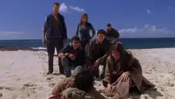 In their emergency raft, the French team, Montand (Marc Menard), Brenan (Bruno Bruni), Lacombe (Chris Marvin), and Nadine (Alexandra Tabas) find Jin-Soo Kwon (Daniel Dae Kim) unconscious floating on flotsam from the freighter that exploded.[N 1] They land on the island and question Jin after he wakes up. The episode ends with Danielle Rousseau (Melissa Farman) revealing her identity to a befuddled Jin.