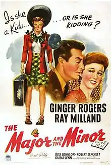 The Major and the Minor is a 1942 American comedy film starring Ginger Rogers and Ray Milland. It was the first American film directed by Billy Wilder.[2] The screenplay is credited to Wilder and Charles Brackett is "suggested by" the 1923 play Connie Goes Home by Edward Childs Carpenter, based on the 1921 Saturday Evening Post story "Sunny Goes Home" by Fannie Kilbourne.