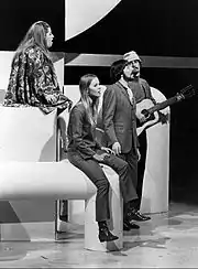 ![]() (L-R): Michelle Phillips, Cass Elliot, Denny Doherty and John Phillips on The Ed Sullivan Show telecast of June 11, 1967 | |