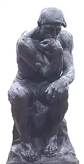 Most of the action for the first season-and-a-half of Dobie Gillis centered on the Gillis grocery store, Central High School, and the Central City park. The park scenes are used as the show's framing device, with Dobie sitting on a park bench in front of a reproduction of Auguste Rodin's statue The Thinker. Breaking the fourth wall, he would explain to the viewing audience his problem of the week, usually girls or money (in the earliest episodes, Dobie is seen emulating the trademark pose of The Thinker – head planted on fist in deep contemplation – before turning and acknowledging the camera).[4]