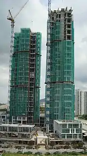 The Maritime is a SOHO complex at the Jelutong suburb near the city of George Town in Penang, Malaysia. Located at Karpal Singh Drive, it consists of two residential skyscrapers, collectively named The Maritime Suites, and The Maritime Piazza, which serves as the retail component of the mixed development.[2] The Maritime Suites consist of Suites A and B, which contains 36 and 40 floors of duplex SOHO suites respectively.[5][4][6] Meanwhile, The Maritime Piazza now houses The Maritime Automall, which also includes several al fresco eateries and other retail outlets.[7][8]