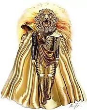 The costumes worn by the celebrity contestants were designed by Marina Toybina, a four-time Emmy Award winner.[3] Toybina described the Lion and Monster costumes as her favorites from the first season. The Lion—which took the longest to make—was inspired by The Chronicles of Narnia and Joan of Arc. It was unlike the other eleven costumes as the gemstone-laden mask was sculpted out of clay and coated in gold to give it an "armor-like aesthetic." The Monster, meanwhile, was designed around a 360° foam cylinder with built-in vents made of mesh to provide oxygen to the performer. However, during filming, the large eye the celebrity saw out of frequently fogged up due to a lack of air; tiny fans were then installed inside the costume to provide circulation.[4][5][6] Fans were also placed inside the full-body Pineapple costume, which was constructed to resemble a Hawaiian surfer on the beach in the summer.[7]