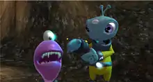 The Maw is set in a futuristic universe. The game begins with Frank, a pacifist bipedal alien, and The Maw, a purple one-eyed creature with small- medium teeth, both having been captured by the Galactic Bounty Hunters.[1] For unknown reasons the ship on which they are being held crash lands on a strange planet, killing all the crew. Alone, they set out for a communications tower in the distance while on the run from additional Galactic Bounty Hunters who have come to recapture them.[2]