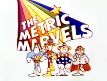 The Metric Marvels is a 1978-1979 series of seven animated educational shorts featuring songs about meters, liters, Celsius, and grams, designed to teach American children how to use the metric system. They were produced by Newall & Yohe, the same advertising agency which produced ABC's Schoolhouse Rock! series, and first aired on the NBC television network in September 1978.[1] The spots were shown three times each Saturday during the children's programming block for the 1978-79 season.[2]